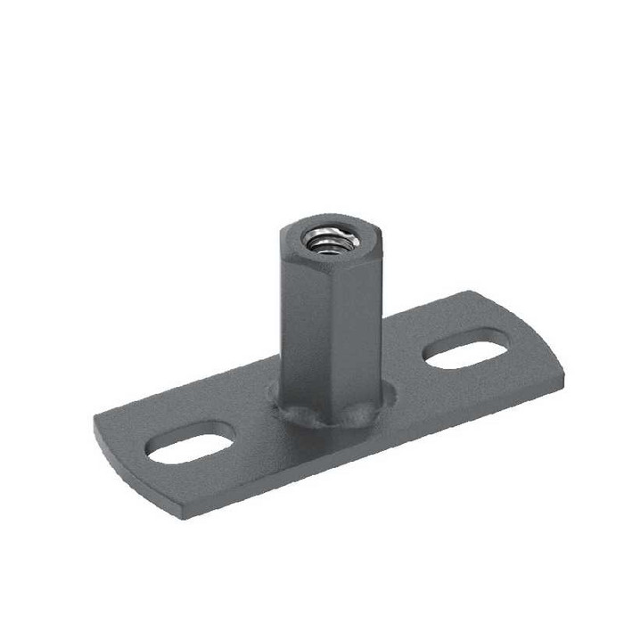 Данный элемент предназначен для крепления хомута водосточной трубы на все типы вентилируемых фасадов, а также любые типы фасадов имеющих облицовку из тонколистовых металлов (сэндвич-панели, металло-кассеты, линеарные панели и т.п.). Элемент представляет собой монтажную площадку из оцинкованной стали толщиной 3 мм и размером 30х80 мм, имеющую два монтажных отверстия и втулку с резьбой под шпильку М10 мм.