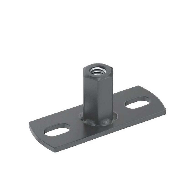 Данный элемент предназначен для крепления хомута водосточной трубы на все типы вентилируемых фасадов, а также любые типы фасадов имеющих облицовку из тонколистовых металлов (сэндвич-панели, металло-кассеты, линеарные панели и т.п.). Элемент представляет собой монтажную площадку из оцинкованной стали толщиной 3 мм и размером 30х80 мм, имеющую два монтажных отверстия и втулку с резьбой под шпильку М10 мм.