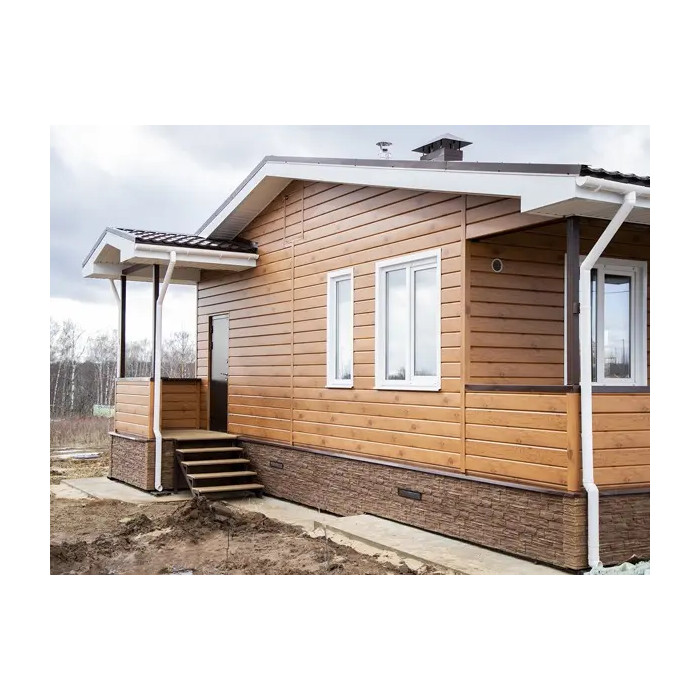 • В отличие от облицовки фасада деревом, металлический сайдинг «ЭкоБрус GL» прост в монтаже и не требует дополнительного послемонтажного ухода.