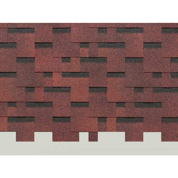 Трёхлепестковый гонт с нарочито несимметричным перехлестом лепестков дополнит самые оригинальные проекты. Сильный цвет и чёткие линии кровли придадут частному дому солидный стиль и основательность.
