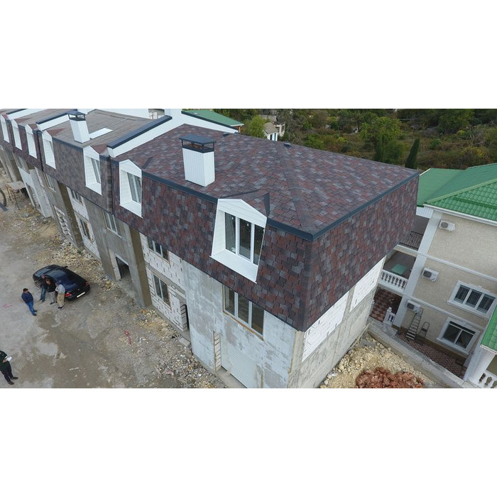 SBS-модифицированный битум в основании придаёт черепице особо высокую пластичность. Поэтому она не трескается на морозе и не коробится в жаркую погоду. Кроме того, её удобно сгибать при монтаже криволинейных участков кровли