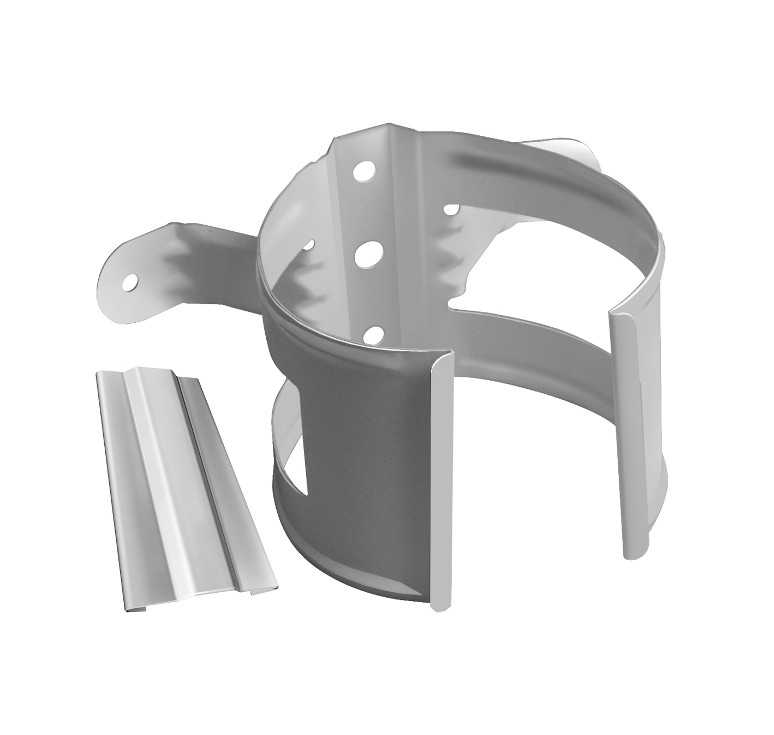 Хомут трубы необходим для крепления водосточной трубы к стене. Он надёжно удерживает и фиксирует водосточную трубу в заданном положении, что во многом упрощает процесс монтажа.