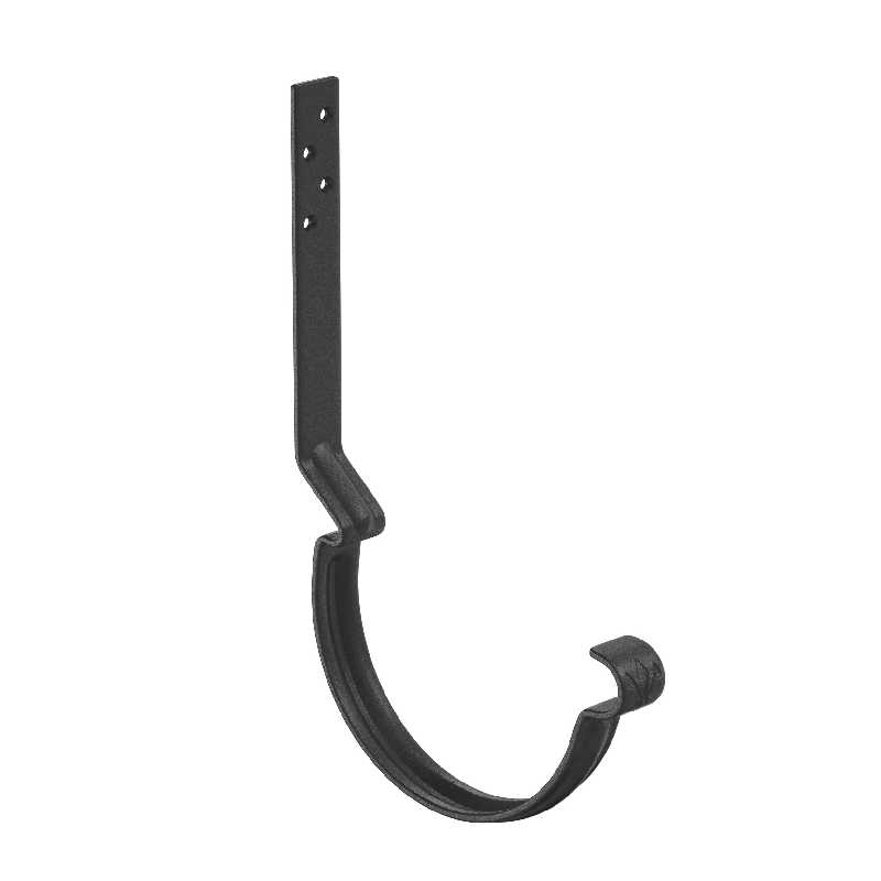 Крюк крепления желоба — цельнометаллический, изготовлен из стали толщиной 4 мм. Обеспечивает силовую поддержку желоба и неизменность его геометрических параметров, создаёт уклон, необходимый для движения воды в заданном направлении. Благодаря ребрам жесткости обладает повышенной прочностью, выдерживает большие силовые нагрузки.-Задний замок выполнен со смещением, что позволяет обеспечить наличие вентиляционного зазора между желобом и лобовой доской -Увеличенное «монтажное плечо» крюка (160 мм – длинный крюк; 230 мм – удлиненный крюк) удобный монтаж на разные уклоны крыши-Дополнительное ребро жесткости,  увеличивающее прочность и надежность крюка-Особая марка стали повышенной прочности, цельнометаллическая полоса толщиной 4 мм с оцинковкой 275 г/м.кв.-Уникальность подтверждает фирменный штамп «лилия» расположенный в передней части.