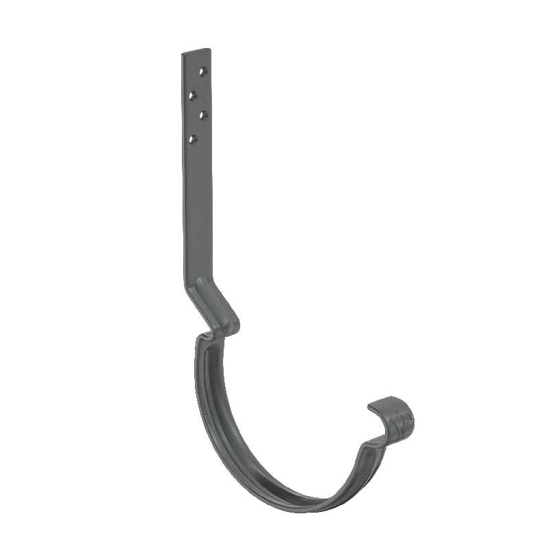 -Задний замок выполнен со смещением, что позволяет обеспечить наличие вентиляционного зазора между желобом и лобовой доской -Увеличенное «монтажное плечо» крюка (160 мм – длинный крюк; 230 мм – удлиненный крюк) удобный монтаж на разные уклоны крыши-Дополнительное ребро жесткости, увеличивающее прочность и надежность крюка-Особая марка стали повышенной прочности, цельнометаллическая полоса толщиной 4 мм с оцинковкой 275 г/м.кв.-Уникальность подтверждает фирменный штамп «лилия» расположенный в передней части.