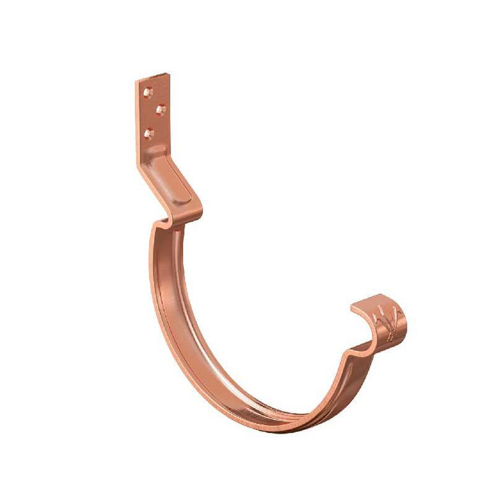 Конструкция крюка имеет более вытянутое и глубокое ребро жесткости, поэтому крюк выдерживает повышенные силовые нагрузки. Передний замок крюка фиксирует завиток желоба снаружи, и благодаря этому желоб удобно монтировать даже после установки фартука-капельника. Задний замок имеет конструкцию, исключающую смещение желоба под нагрузкой. Отверстия под крепеж выполнены с зенковкой под шляпку в потай. На передней части крюка расположен фирменный штамп - лилия.Поставляется с комплектом креплений.