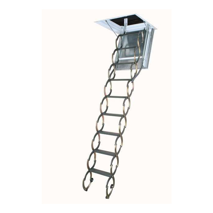 В ассортименте FAKRO есть также и складные чердачные лестницы «ножничного» типа. Такие модели выполнены из металла, защищенного от коррозии. Поставляются совместно с потолочным коробом, позволяющим хранить сложенную чердачную лестницу «в потолке».