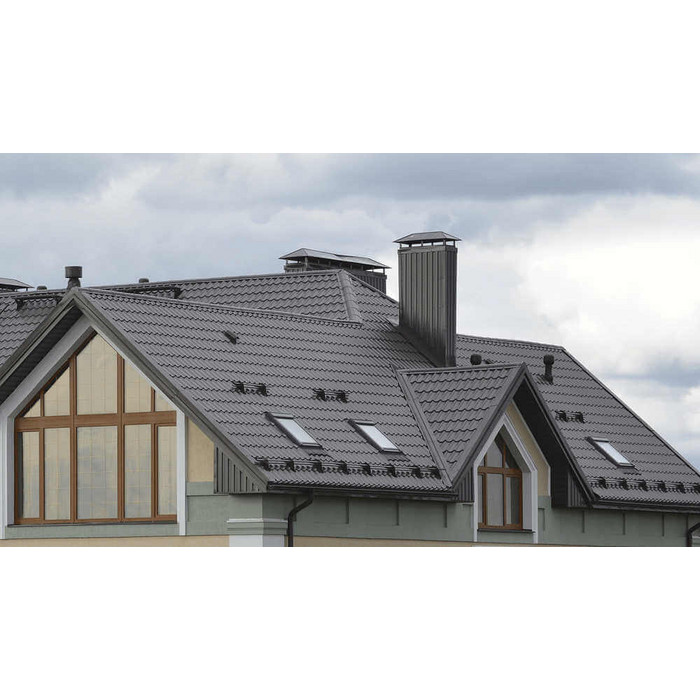 Если вам нужна традиционная металлочерепица для больших крыш, обратите внимание на Ламонтерра® XL. Она характеризуется увеличенными размерами: длина ступеней — 400 мм, высота — 21 мм. Большие плавные волны подчеркнут размеры скатов и сделают кровлю более эффектной.