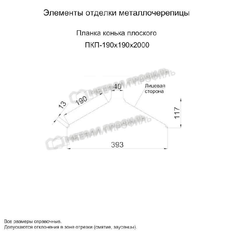 Планка конька плоского 190х190х2000 (ПЭ-01-3009-0.45)