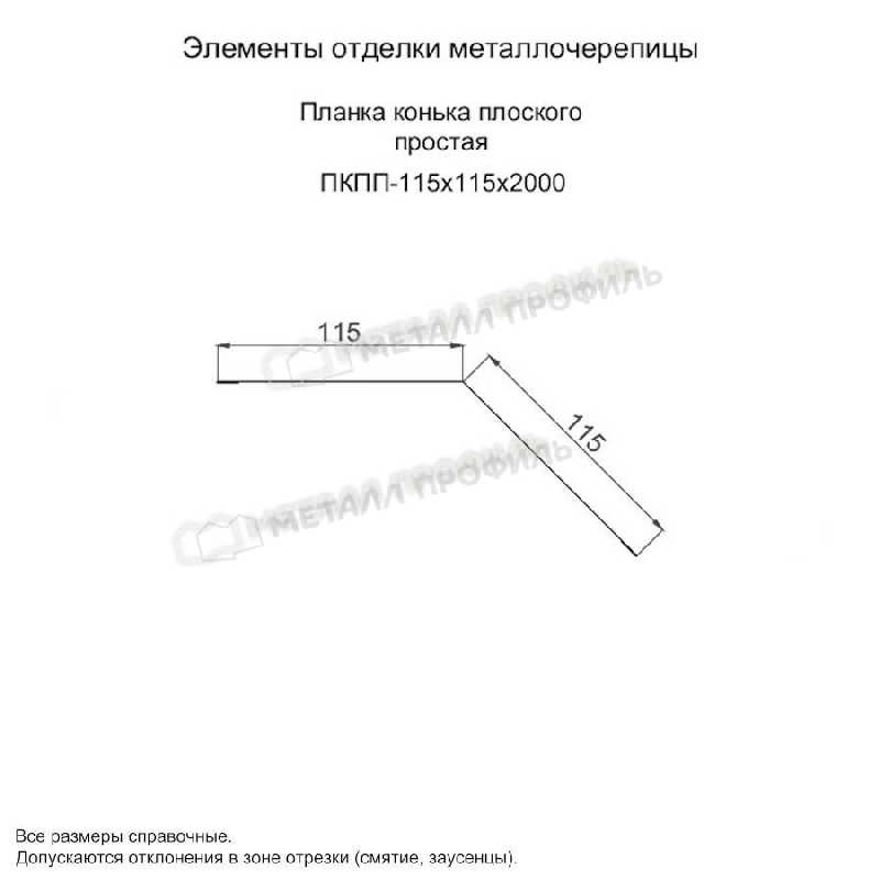 Планка конька плоского простая 115х115х2000 (ПЭ-01-9003-0.45)