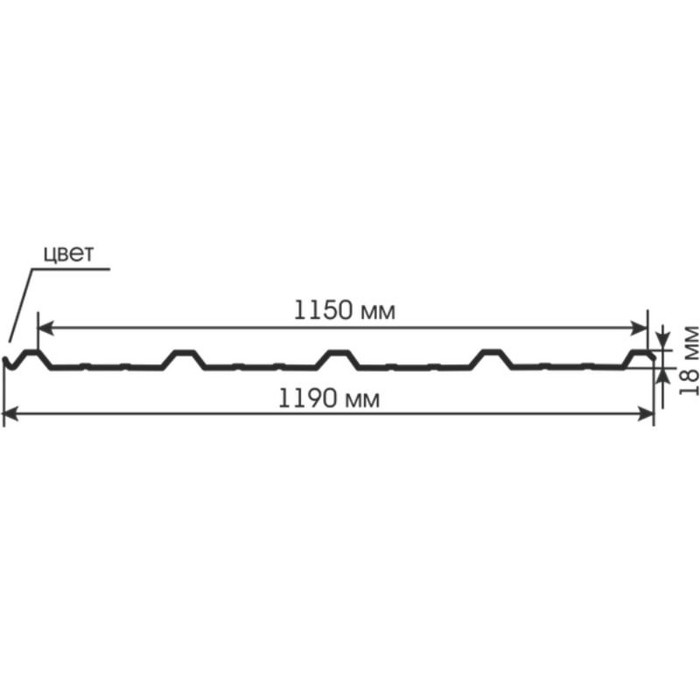 Профнастил С18 выпускается несимметричным волнистым или трапециевидным профилем, высота которого составляет 18 мм. Прокатываются листы с полезной шириной в трех размерах как 800мм, 900мм, 1000мм что дает возможность использовать листы без остатков. Данный тип имеет несколько дополнительных ребер жесткости для предания устойчивости и прочности. Герметичность конструкции достигается за счет дополнительных канавок с узкого края профиля. Подобная модификация и толщина металла от 0,4 до 0,9 мм гармонично совмещает в себе прочностные параметры с эффектным обликом. Широкое применение профнастила достигается за счет удачного сочетания характеристик: кровельные покрытия, быстровозводимые здания, навесы, облицовка зданий и изготовление утепленных сэндвич-панелей. В качестве исходного сырья для изготовления С18 выступает оцинкованная тонколистовая сталь. Она прекрасно переносит даже тяжёлые климатические нагрузки: агрессивный ультрафиолет, ветер, тяжёлый снег. А защитное полимерное покрытие дополнительно предотвращает ржавение и прочие окислительные реакции.