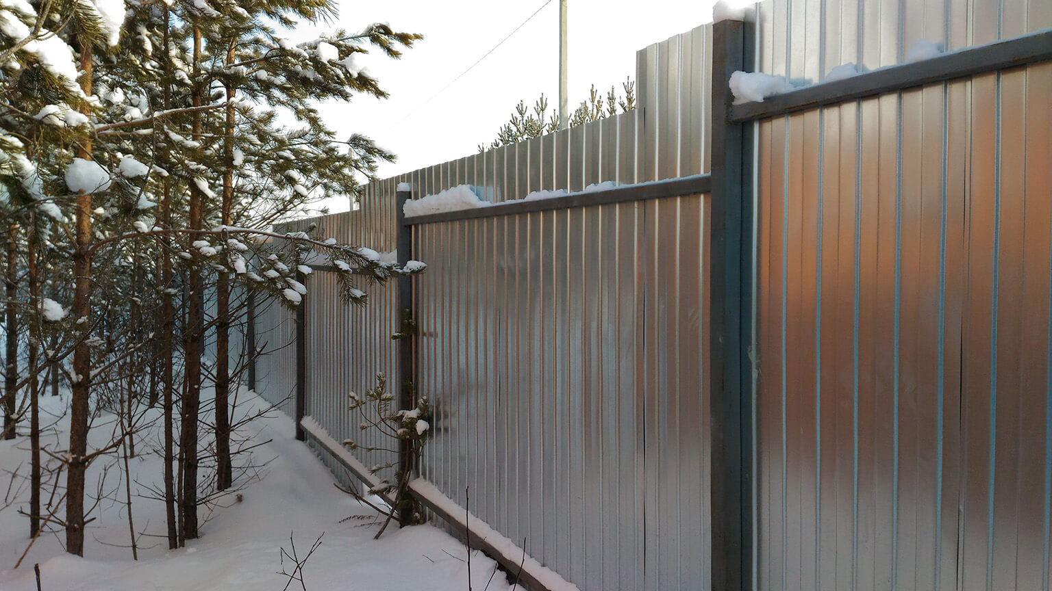 - Внутреннее обустройство заборов и ограждений. Профнастил с нестандартной шириной может применяться для создания металлических заборов и ограждений, обеспечивая надежность и долговечность конструкции.
