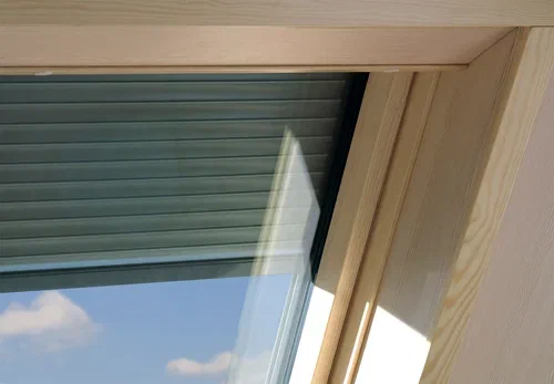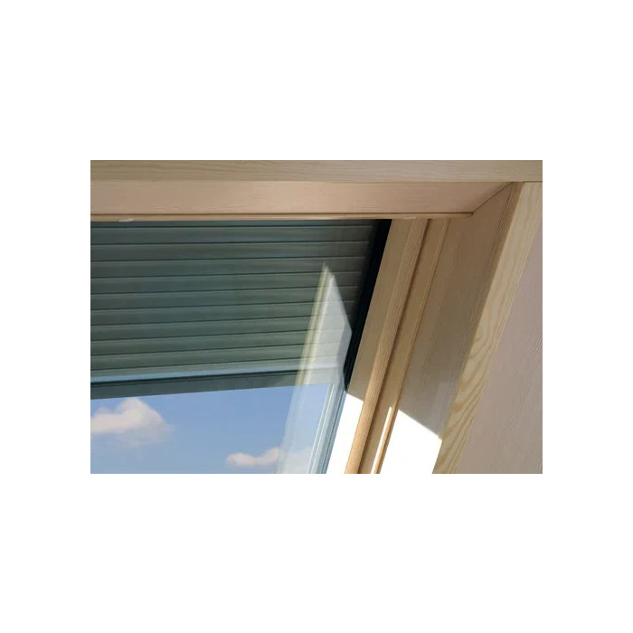 Рольставни FAKRO изготавливаются из алюминиевых профилей, окрашенных полиэстером. С внутренней стороны алюминиевые профили проклеены специальным материалом, ограничивающим проникновение в мансарду излишнего тепла.