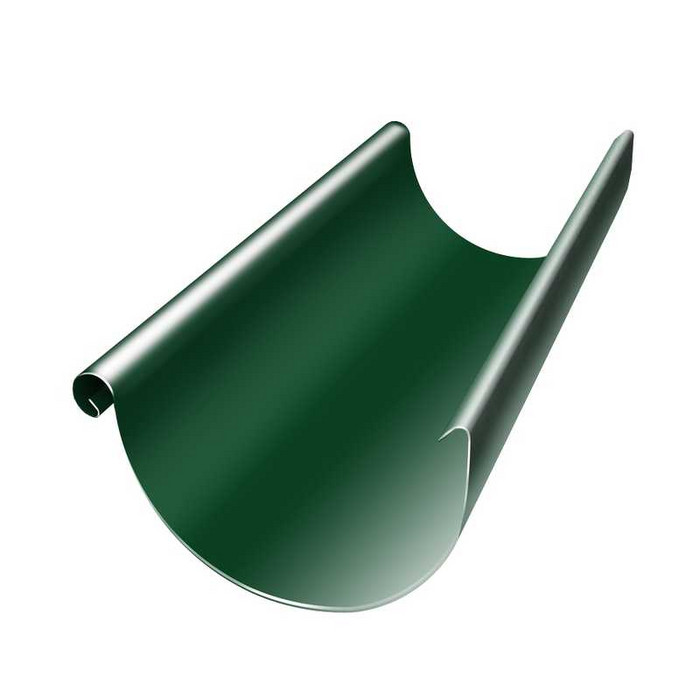Желоб полукруглый предназначен для сбора дождевой воды с кровли. Желоб фиксируется на крюках, установленных с промежутком 600-900мм и обеспечивающих уклон 5 , мм на погонный метр.